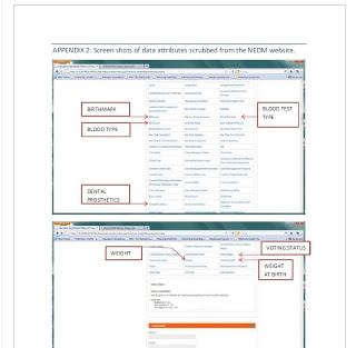 Restore Oklahoma Public Education has covered this issue extensively with regards to Oklahoma. On their website is a screen shot of the suggested data points to be collected that have been scrubbed from the National Education Data Model website. You can see that the US DOE originally made public that suggested data points were, blood type, birthmark, weight, weight at birth. Those have now been scrubbed from the website.