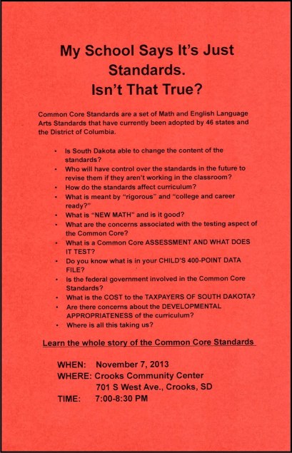 Common Core Information and Action, November 7, 2013, Crooks, SD maryscheelbuysse / October 16, 2013 Share this: Click to share on X (Opens in new window) X Click to share on Facebook (Opens in new window) Facebook Like Loading...